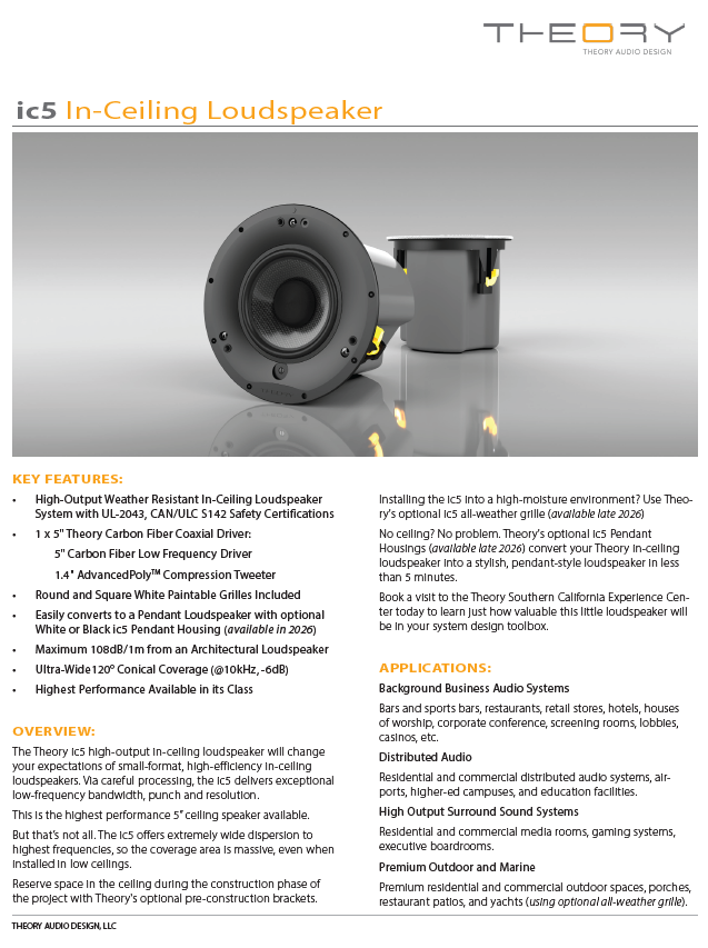 The ic5 Frequency Response is remarkably flat and extended insuring the highest accuracy and highest-resolution available. Even at very low levels, the sound is crystal clear, open and delicate.